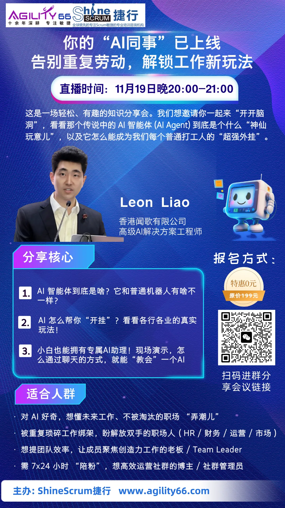 这是一场轻松、有趣的知识分享会。我们想邀请你一起来“开开脑洞”,看看那个传说中的 AI 智能体 (AI Agent) 到底是个什么“神仙玩意儿”,以及它怎么能成为我们每个普通打工人的“超强外挂”。