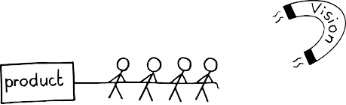 那位对新产品满怀热忱的个人就成为了 ¶11“产品负责人”,团结起利益相关者与潜在队友,共同阐述,并一起定义和打磨一份愿景。该愿景描绘出产品如何支撑一个被期望的未来,一个未来产品组织所奔赴的未来(见第 11 页“产品组织模式语言”)。