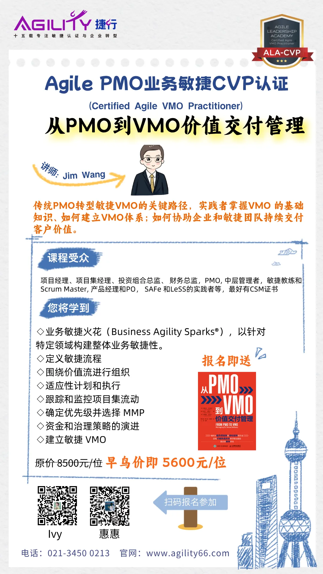 • Agile PMO 业务敏捷CVP认证:构建敏捷化的项目管理体系,让战略无摩擦转化为行动,提升组织响应速度与价值交付效率。