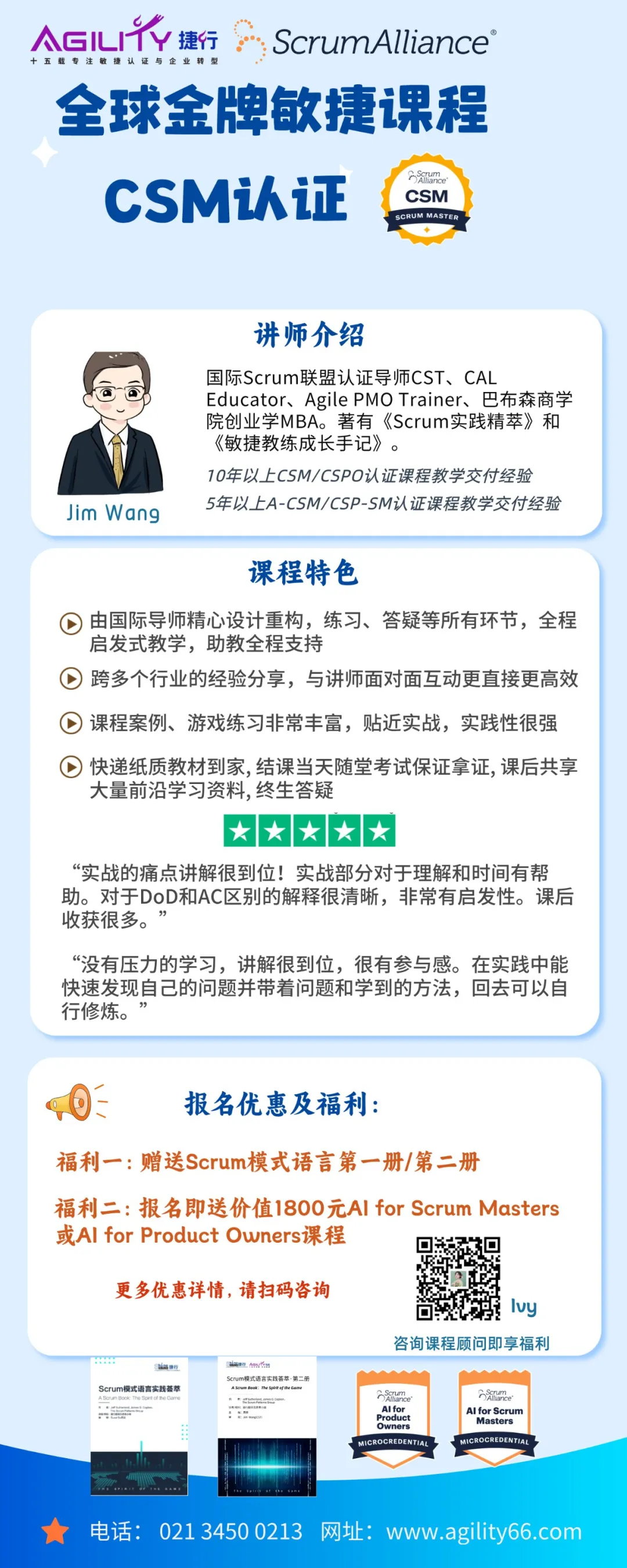 • 全球金牌敏捷课程-CSM 认证:掌握 Scrum Master 的实战技能,赋能团队自主协作,打造高效、自驱的敏捷执行单元。